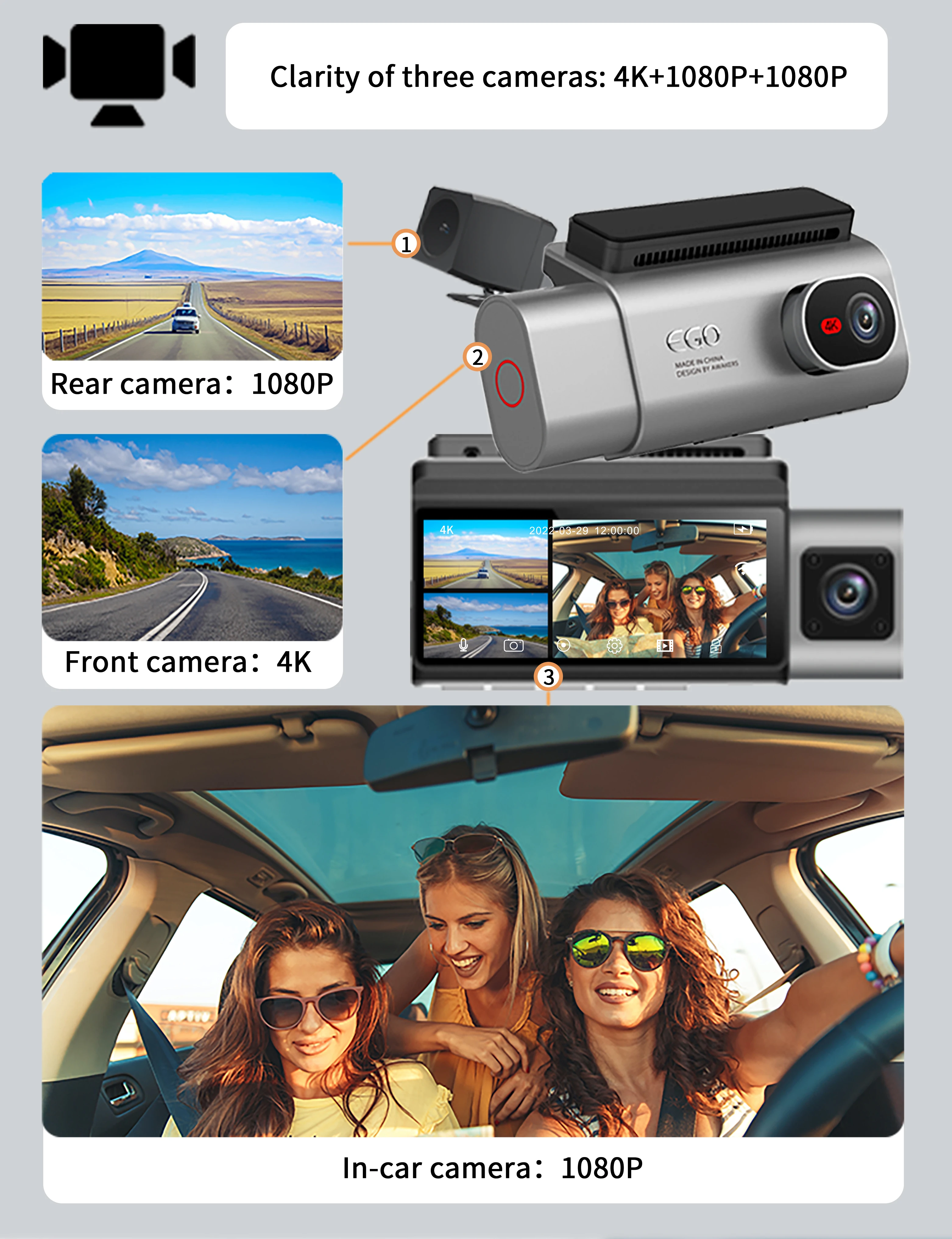 📸 Triple-Lens Design: Capture every angle with three high-definition lenses. The S13 Model Car Camera features front, rear, and interior cameras, providing complete coverage of your vehicle and its surroundings.