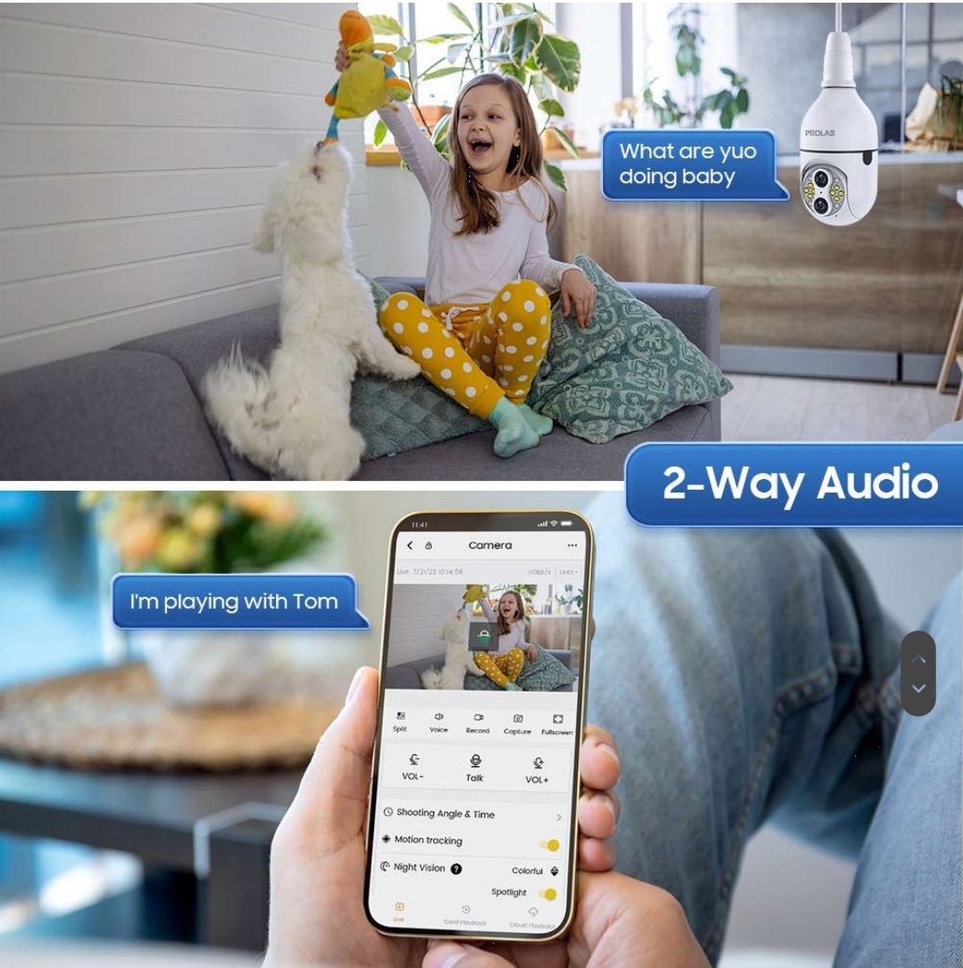 🔄 Two-Way Communication: Built-in microphone and speaker allow for seamless two-way communication. Whether it’s greeting visitors or deterring trespassers, interact in real-time through the camera bulb.