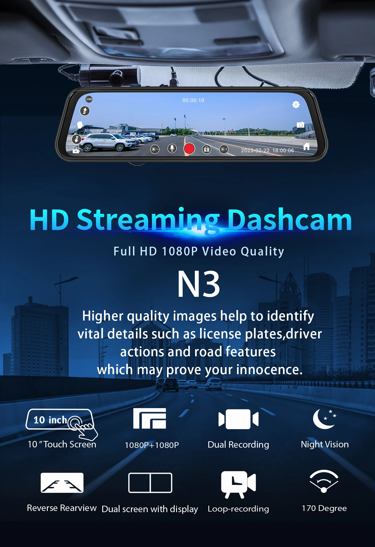 The N3 Model Dashcam with Rear View is your trusted ally on the road, offering unmatched peace of mind and security for every journey. With its innovative design and advanced features, this dashcam provides comprehensive coverage of your vehicle’s surroundings, ensuring that you’re always prepared for whatever the road may bring.